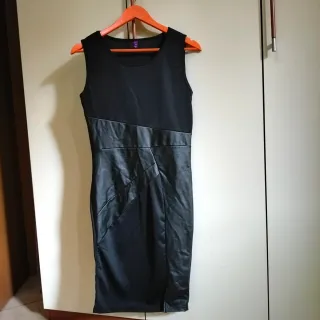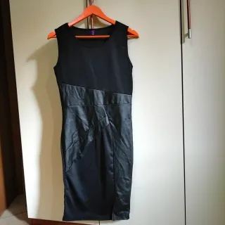 Elegante abito Romacci con un design moderno. - Tessuto principale in maglia. - Dettagli in ecopelle. - Linea aderente. Composizione: polyeste95%, spandex 5%
