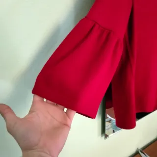 Maglione girocollo con maniche a campana. - Colore rosso vivace. - Tessuto morbido e confortevole. - Maniche a tre quarti con dettaglio a campana. Composizione: polyester 86%, poliamid 14%