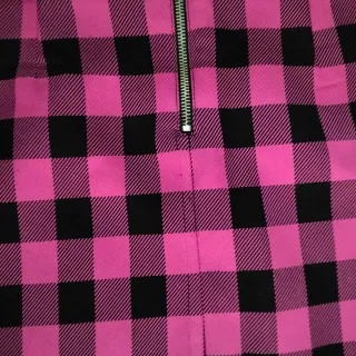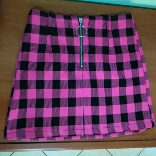 Gonna invernale con fantasia a quadri scozzesi. - Fantasia a quadri fucsia e neri. - Zip frontale con anello.