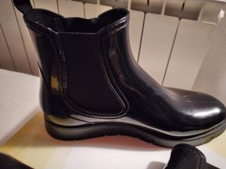 Stivaletti neri lucidi, perfetti per la pioggia o per un look alla moda. articolo acquistato in farmacia ma non ortopedico - Materiale lucido effetto vernice. - Elastici laterali per una facile calzata. - Suola in gomma antiscivolo.