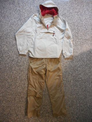 Tuta sportiva Diadora taglia S. Impermeabile con cappuccio e strato a rete interno per respirabilita del sudore. - Taglia S - Colore beige - Interno cappuccio rosso
