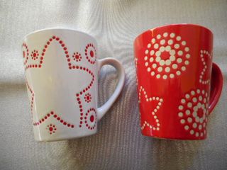 Set di due tazze Brandani, perfette per la colazione o una pausa rilassante. Il design moderno e i colori vivaci le rendono un'aggiunta allegra alla tua cucina. Diametro da 8cm con capacità di 250ml. cadauna della collezione Incanto by BRANDANI. Lavabili in lavastoviglie. - Tazze in ceramica con decorazioni a pois e stelle. - Interno rosso brillante. - Manico comodo per una presa sicura.