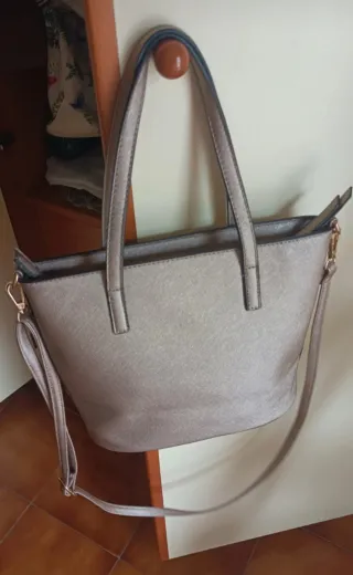 Borsa a secchiello con tracolla nuova. Regalo non utilizzato. In similpelle. Colore cuoio. Lunghezza della tracolla 96 cm. Larghezza borsa 25 cm. e altezza 21 cm. - Design a tre scomparti con zip. - Capiente. Molto semplice. - Si adatta a qualsiasi abbinamento.