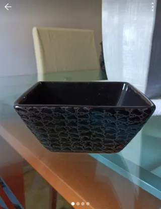 Elegante ciotola quadrata di colore nero, perfetta per servire o come elemento decorativo (svuota tasche, porta caramelle o cioccolatini , porta gioie) - Design moderno con texture a rilievo. - Materiale ceramico lucido.