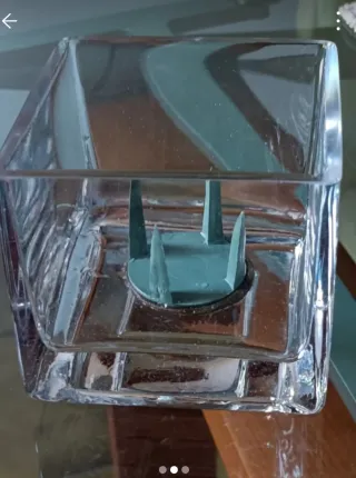 Elegante vaso in vetro trasparente con decorazioni interne rosse. - Materiale: Vetro - Colore: Rosso e trasparente
