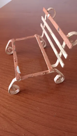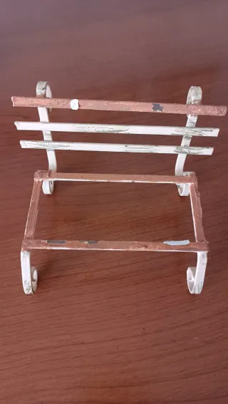 Panchina decorativa in metallo, perfetta per aggiungere un tocco di charme. Da ristrutturare. Per le tue creazioni. Svendo a 3 euro. - Design a listelli. - Gambe curve.