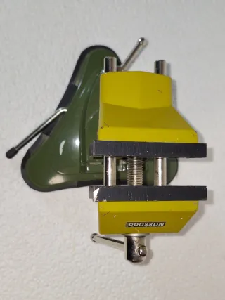 Morsa da banco Proxxon di colore giallo e verde. - Ideale per lavori di precisione. - Dotata di ganasce con protezione in gomma. - Base girevole per un facile posizionamento.