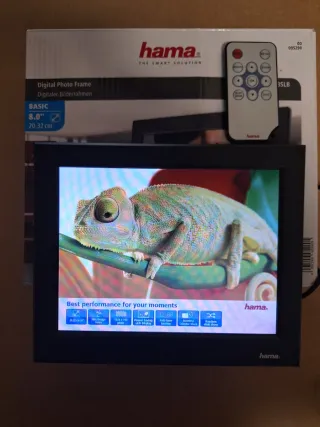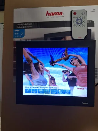 Cornice digitale Hama, modello BASIC con schermo da 8 pollici. - Dimensioni schermo: 8.0 (20.32 cm) - Risoluzione display: 1024 x 768 pixel - Tipo display: LED - Funzioni: Slideshow, Calendario/Orologio