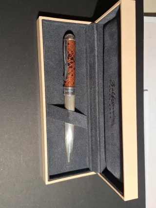 Elegante penna a sfera con finiture in argento. Marca Baldessanini - Corpo con texture effetto pelle di serpente. - Clip in metallo argentato. - Dettagli in argento 925