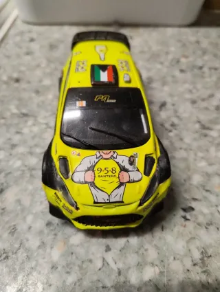 Modellino Ford Fiesta SCX con telaio Killslot. - Colore giallo con grafiche. - Spoiler posteriore nero. - Cerchi neri con dettagli argentati.