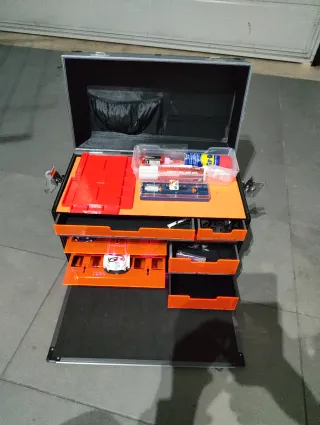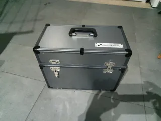 Pratica valigetta porta accessori per slot car. - Materiale: alluminio. - Colore: grigio. - Chiusure a scatto.