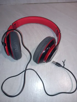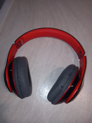 Cuffie con funzionalità wireless e radio integrata. - Design moderno con finiture rosse e nere. - Padiglioni morbidi per un maggiore comfort.