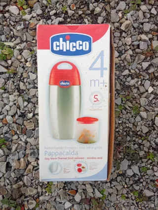Portapappa termico Chicco Pappacalda in acciaio inox infrangibile. - Mantiene il calore per 5 ore. - Include due contenitori per la pappa. - Realizzato in acciaio inossidabile, ottimo stato e funzionante
