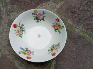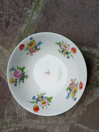 Insalatiera porcellana Limoges con un delicato motivo floreale. - Decorato con fiori colorati su sfondo bianco, tutto in perfette condizioni - Bordo verde sottile, misura indicata