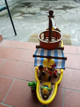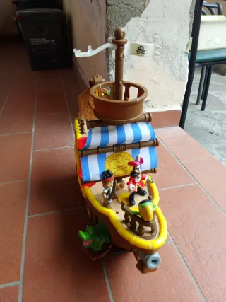Nave pirata elettronica ed interattiva premendo i pulsante i personaggi parlano, ad un lato il coccodrillo esce fuori dalla nave ecc... Lunghezza cm 45 Inclusi tre personaggi, come foto