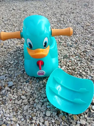 Vasino a forma di anatra, ideale per i più piccoli. Con coperchio, mai utilizzato - Colore: turchese e arancione. - Manopole per la presa il becco del papero che premendolo suona