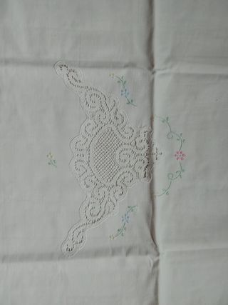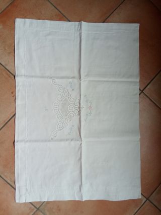 Federa in tessuto con ricami decorativi. cm 73*48 - Motivo floreale angolare. - Dettaglio ricamato - Bordi rifiniti con cucitura.