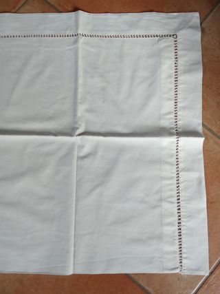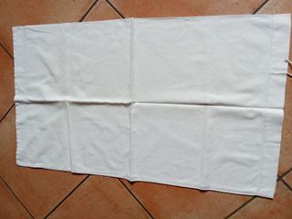 Federa in tessuto di colore bianco, con un delicato bordo decorativo verdino (da un lato è un po uscito dalla cucitura, come foto) cm 78*43
