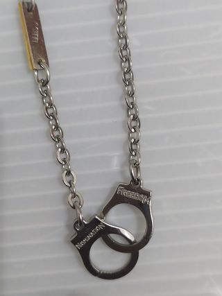 Collana Nomination in acciaio anallergico con ciondolo a forma di manette. Ciondolo con incisione Freedom. Ciondolo con incisione Nomination. Chiusura a moschettone.