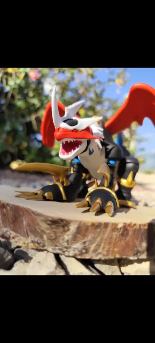 Action figure 3D del Digimon Imperialdramon. - Design dettagliato. - Colori vivaci. - Ideale per collezionisti.