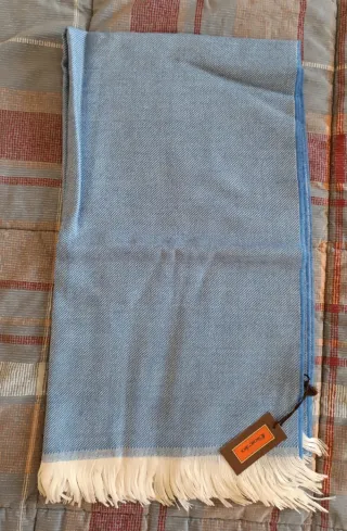 Sciarpa Fiorio in 100% lana, realizzata in Italia. - Composizione: 100% Lana - Made in Italy - Colore: Azzurro e bianco
