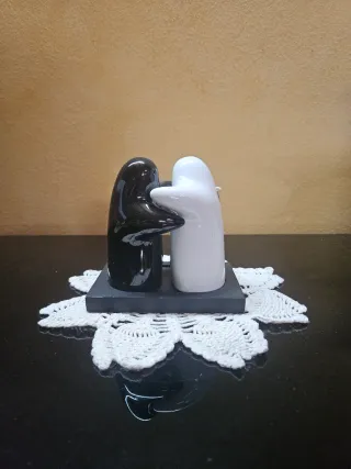 elegante set portasale e portapeppe in ceramica. Il design unico raffigura due figure stilizzate, una nera e una bianca, che si abbracciano, creando un effetto decorativo moderno e armonioso. Caratteristiche: Materiale: ceramica liscia e brillante Colori: bianco e nero per un contrasto elegante Base inclusa per un’esposizione stabile Ideale sia come oggetto funzionale sia come elemento decorativo Ottimo come idea regalo Perfetto per chi cerca un accessorio pratico ma anche originale, capace di rendere la mise en place più raffinata e accogliente.