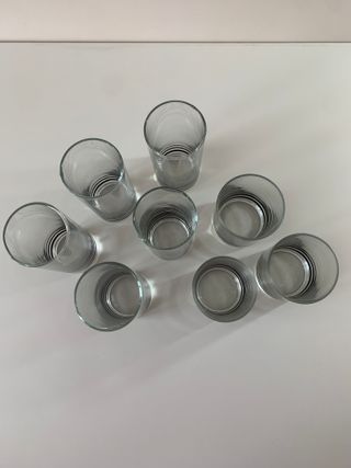 Set di bicchieri con strisce nere, composto da 5 bicchieri alti (14 cm), 2 medi (9 cm) e 1 piccolo (8 cm), ideale per chi ama una tavola elegante e moderna. Perfetti per qualsiasi bevanda, questi bicchieri uniscono funzionalità e stile, rendendoli adatti sia all’uso quotidiano che a occasioni speciali. Ideali per rinnovare o completare una collezione esistente, disponibili preferibilmente in blocco ma anche singolarmente. Set de vasos con rayas negras, compuesto por 5 vasos altos (14 cm), 2 medianos (9 cm) y 1 pequeño (8 cm).