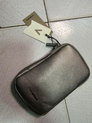 Elegante porta cellulare in similpelle con zip. - Materiale: similpelle testurizzata - Colore: grigio metallizzato - Chiusura con zip