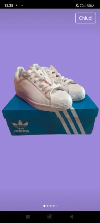 Iconiche sneakers Adidas Superstar in pelle. - Design classico. - Chiusura con lacci. - Suola in gomma.