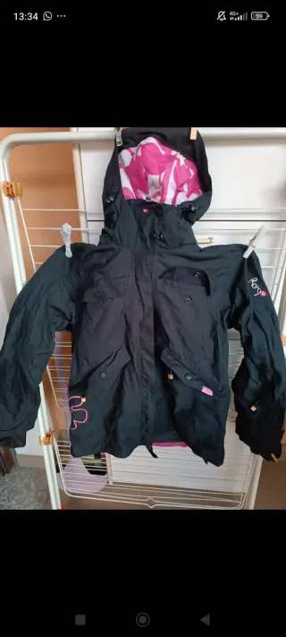 Giacca da snowboard Roxy, perfetta per le giornate sulla neve. Il design è pensato per offrire comfort e protezione. - Colore nero con dettagli fucsia. - Cappuccio integrato. - Tasche frontali con chiusura. - Polsini regolabili.