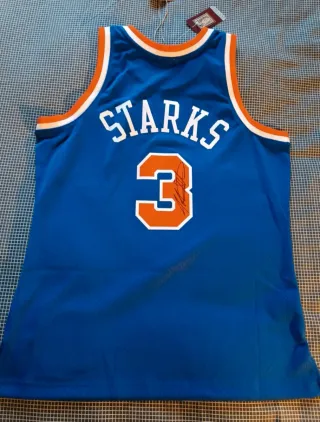 Canotta NBA Hardwood Classics Mitchell & Ness di John Starks, numero 3, per i New York Knicks. - Taglia M - Colore blu - Edizione 1991-92 Autografata da lui ,all'NBA store di New York,in data 03/11/2023,posso fornire prove foto e video in cui si vede lui che firma e la canotta ha un codice che potete riscontrare nel cartellino.