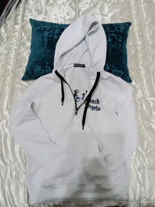 Felpa con cappuccio e stampa. - Cappuccio con laccetti neri e dettagli blu. - Stampa Black Angels sul petto. - Tasca a marsupio frontale.