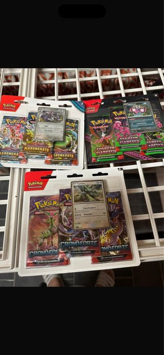 Lotto composto da 3 blister Pokémon. - 1 Blister Pokémon Mascherato. - 1 Blister Pokémon Fiabesco. - 1 Blister Pokémon Cronoforze.
