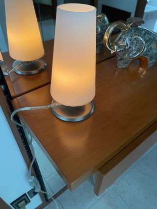 Elegante lampada da tavolo, accensione tattile, 3 posizioni luce calda, perfetta per aggiungere un tocco di stile a qualsiasi ambiente. La sua combinazione di materiali la rende un complemento d'arredo raffinato. - Diffusore in vetro bianco. - Base in metallo lucido.