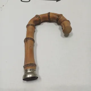 Este es un manico vintage de bambú Whangee, ideal para un paraguas. - Material: Bambú Whangee. - Diseño curvo y natural. - Detalle metálico en la base.
