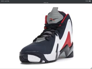 Scarpe da basket/tempo libero Reebok Kamikaze II. Fuori catalogo, scarpe bellissime, nuove, etichetta ancora attaccata alla scarpa. Per amanti sneakers e collezionisti - Design alto e audace. - Combinazione di colori bianco, rosso, blu. - Logo Reebok visibile sulla linguetta.