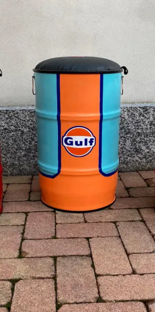 Original pouf a tema Coca-Cola e Gulf, o personalizzati, perfetto per dare un tocco di stile unico ai tuoi spazi. - Design ispirato alle iconiche lattine. - Struttura in metallo resistente. - Seduta imbottita per un maggiore comfort.
