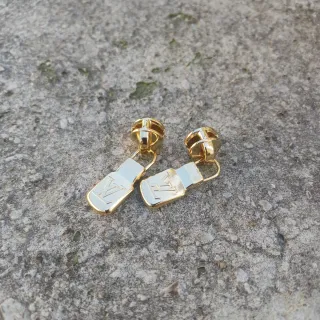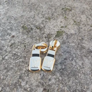 Pieza de repuesto original Louis Vuitton para cremallera. - Diseño elegante en tono dorado. - Logotipo distintivo de la marca grabado.