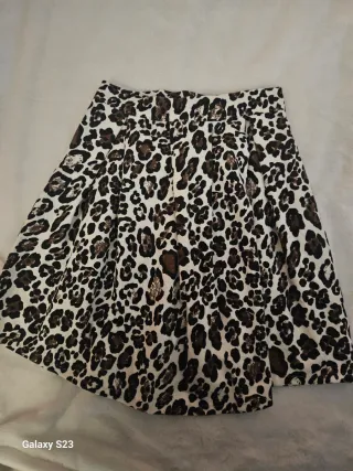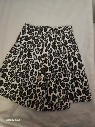 Gonna con fantasia animalier leopardata. Un capo versatile e di tendenza. - Tessuto leggero e fluido. - Vita alta. - Design a pieghe.