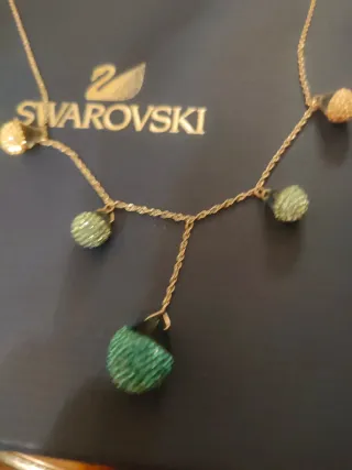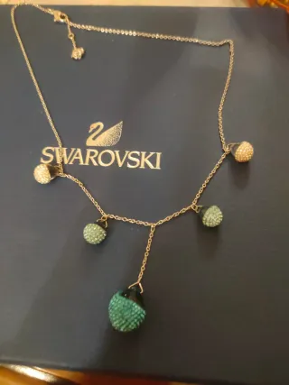 Delicata collana Swarovski con pendenti. - Design elegante con cristalli incastonati. - Lunghezza regolabile per un comfort personalizzato. - Finitura color oro e dettagli verdi.