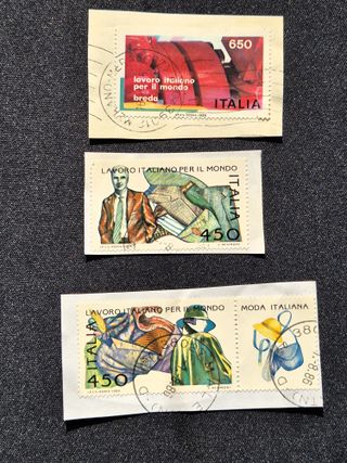 vendo come da immagini: Lotto 4 francobolli poste italiane Lavoro italiano per il mondo per i francobolli in vendita si accettano spedizioni combinate Lotto composto da 4 francobolli delle Poste Italiane. - Francobollo Lavoro Italiano per il Mondo con valore 650. - Francobollo Lavoro Italiano per il Mondo con valore 450. - Francobollo Lavoro Italiano per il Mondo con valore 450. - Francobollo Moda Italiana con valore 380.