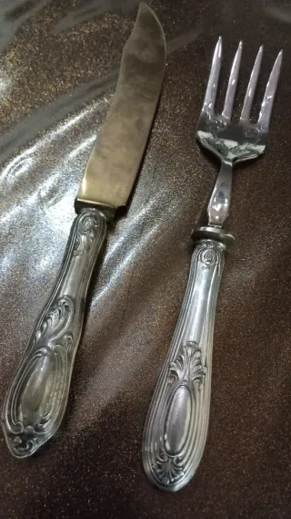 Elegante set di posate antiche, placcate in argento 800. - Design classico e raffinato. - Ideale per occasioni speciali o come pezzo da collezione. - Finitura lucida che riflette la luce.