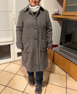 Elegante cappotto da donna con un classico motivo a spina di pesce. - Tessuto caldo e resistente. - Design a monopetto. - Collo a rever. - Maniche lunghe. - Lunghezza al ginocchio.