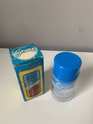 Splendido shaker pubblicitario Nescafe Shake omaggio Nestle. Vintage anni’80. Completo di scatola originale e foglietto illustrativo. Misura altezza 17cm. Materiale plastica. Usato e vissuto ma in buone condizioni estetiche. Articolo di non facile reperibilità per amanti di oggetti pubblicitari vintage.