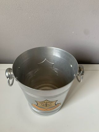 Bellissimo secchiello da ghiaccio pubblicitario del rinomato champagne Veuve Clicquot Ponsardin. Vintage anni’90. Made in France. Materiale metallo. Misura altezza 20cm. Misura diametro alle maniglie 25cm. Usato e con segni di vissuto come da foto ma in buone condizioni. Articolo splendido per amanti e collezionisti del genere.