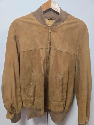 Giubbotto da uomo in vera pelle scamosciata, un capo versatile e di tendenza. - Materiale: vera pelle scamosciata. - Design bomber con colletto e polsini a costine. - Chiusura frontale con zip.