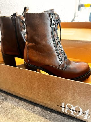 Eleganti stivaletti in pelle marrone, perfetti per completare ogni outfit. - Design con lacci e zip laterale per una calzata personalizzata. - Tacco robusto e suola carrarmato per un look deciso. - Materiale in pelle di alta qualità.