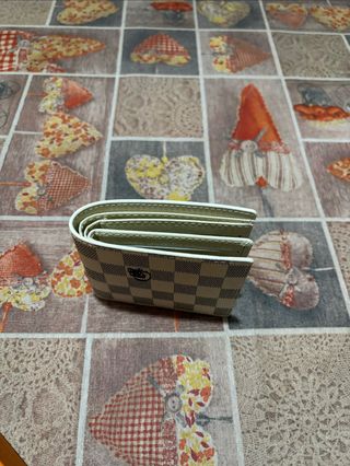 Elegante portafoglio - Motivo a scacchiera bianco e grigio. - Design compatto e funzionale.