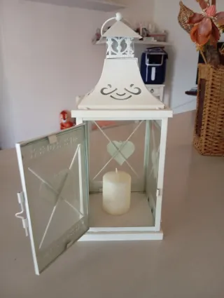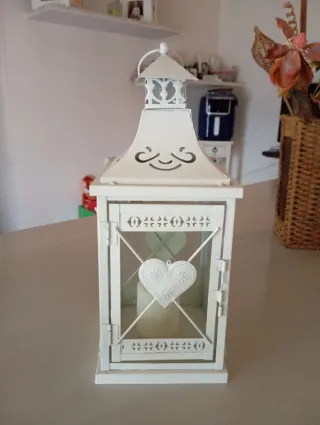 Elegante lanterna bianca, perfetta per aggiungere un tocco di stile alla tua casa. - Design con dettagli traforati. - Cuore decorativo applicato sul vetro.