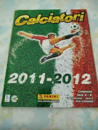 Album Panini Calciatori 2011-2012. Completo e con tutti gli aggiornamenti. Perfetto da edicola - Copertina con design ispirato alla bandiera italiana. - Illustrazione di un calciatore in azione. - Anno di pubblicazione: 2011-2012. - Include i campionati Serie A, B, Divisione, Serie D e Serie A femminile.